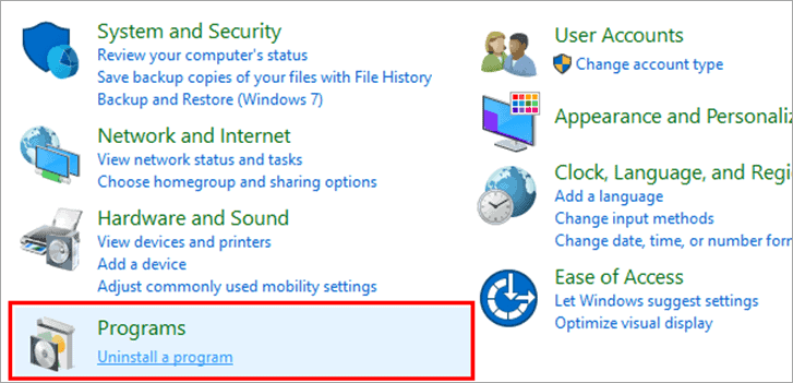 #1) Open the Control Panel and click on “Uninstall a program” as shown in the image below.