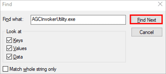 #2) Now, press Ctrl+F from the keyboard and search for “AGCInvokerUtility.exe” and click on “Find Next”.