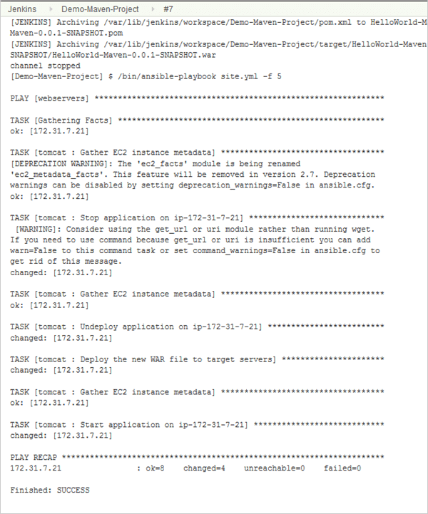 So once the build is done the deployment of WAR file will be automatically triggered using Ansible.