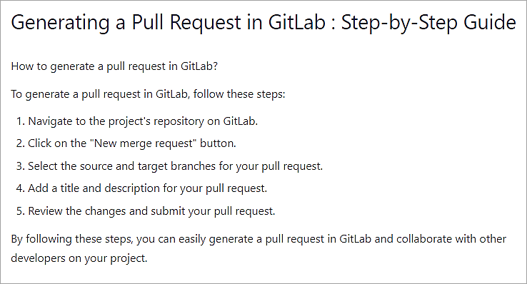 You can search for information faster. In the Search bar, type “GitLab” and click on the Ask AI icon. You can use the link in the Source section below to navigate to the page.