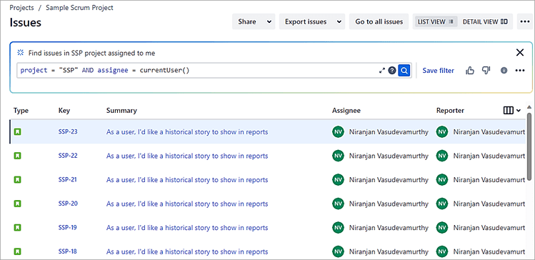Example #1: Enter a text like “Find issues in the SSP project assigned to me”. Click on Go.