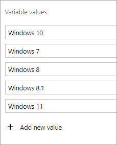 Let’s add a new configuration for Windows 11. Click on Add new value under the All configuration variables -> Operating System