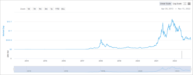 US crypto market growth over time: