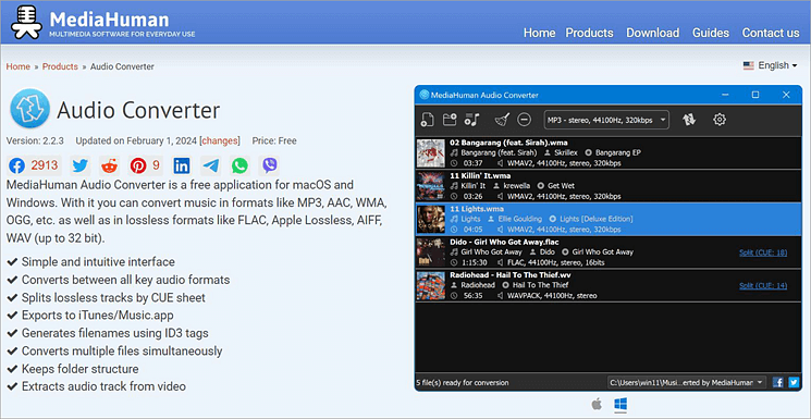 Audio Convert is easy to use and lets you convert files without any restriction on their size. The conversion itself is lossless, and the speed is quite impressive.