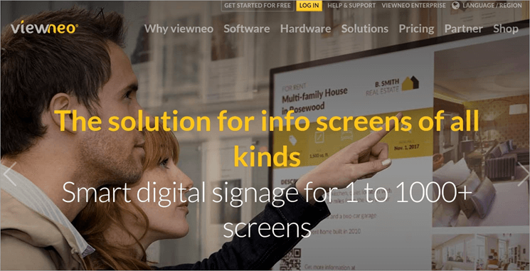 Viewneo is a smart and scalable digital signage solution suitable for all types of screens and can be run on as many screens as you want. It offers a powerful set of solutions, including a kiosk system, video walls, screensaver, LED video walls and more. It gets started in just three simple steps.