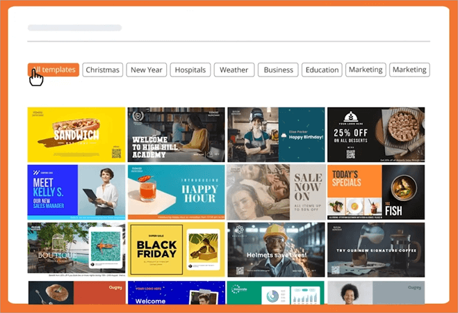 • Gets started in 3 simple steps: Choosing a template, Customizing it, and Pushing it to the screen.