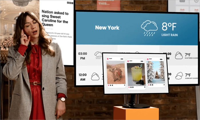 1. Dashboards: Companies can use these to display their sales, customer data, company images, announcements, snippets about their history or mission, and more.