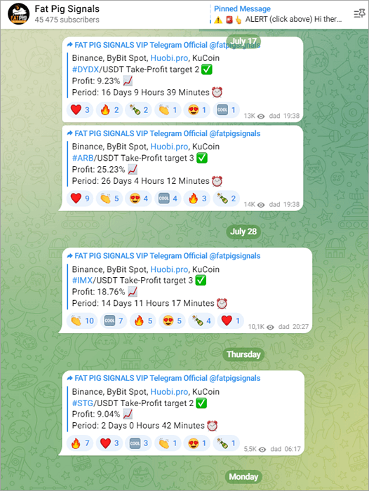 They have many FREE Telegram Crypto Trading Channels but our favorites are: https://t.me/MyCryptoParadise and https://t.me/MCP_Extras