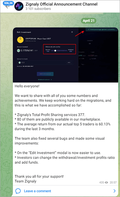 Telegram Channel: https://t.me/ZignalyHQ, https://t.me/zignalyannouncement