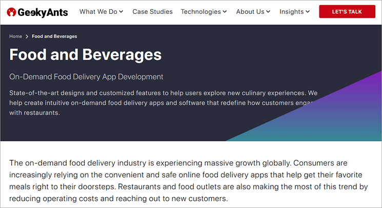 GeekyAnts is an award winning company that lets you hire the best food delivery app developers. Founded in 2006, the company delivers mobile app development services for a wide range of industries, including Food, Healthcare, Finance, Education, Banking, and more.