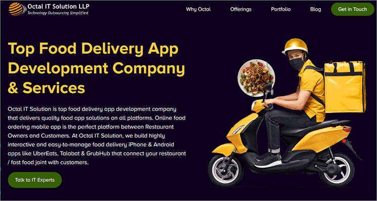 | Octal IT Solution | Offering a wide range of services for online food delivery | $25 - $49 | 1,500+ mobile and web apps built |