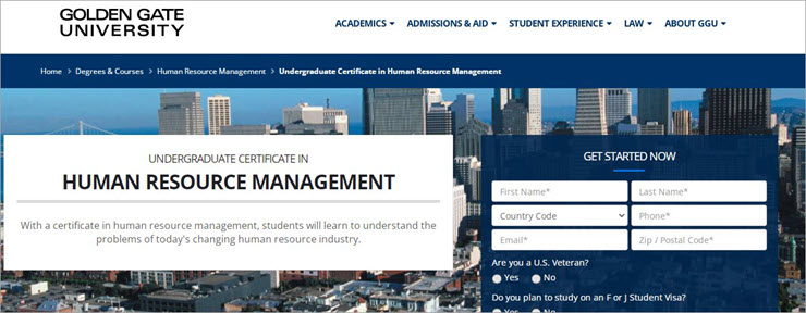 Founded in 1901, Golden Gate University is a well-known and reputed institution. It offers an undergraduate Human Resource Management certificate. This program aims at teaching the students about the real challenges in today’s human resource industry.