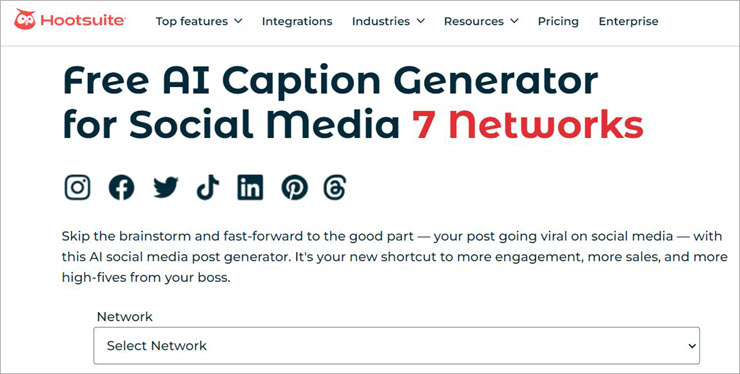 Website: https://www.hootsuite.com/social-media-tools/ai-caption-generator-social-media