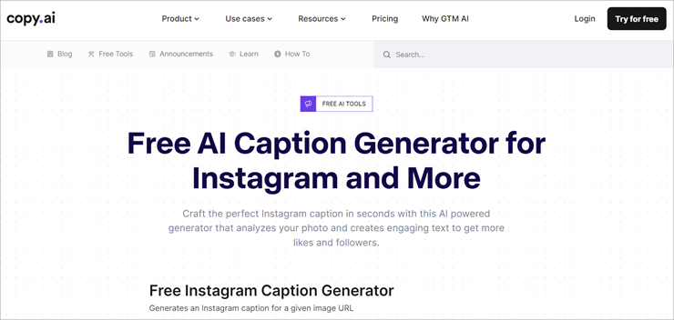 Website: https://www.copy.ai/tools/instagram-caption-generator
