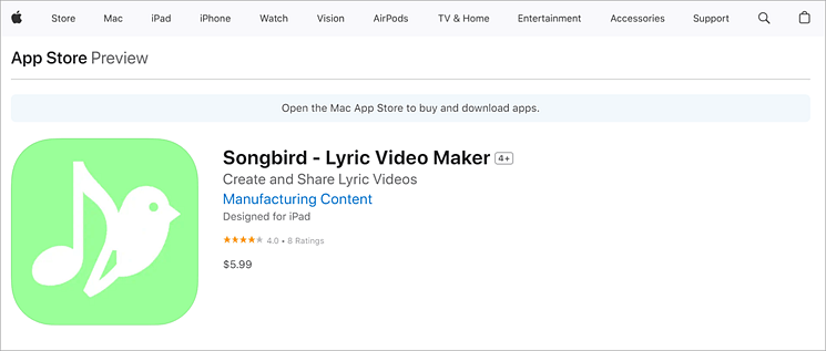 Website: https://apps.apple.com/us/app/songbird-lyric-video-maker/id1410638710