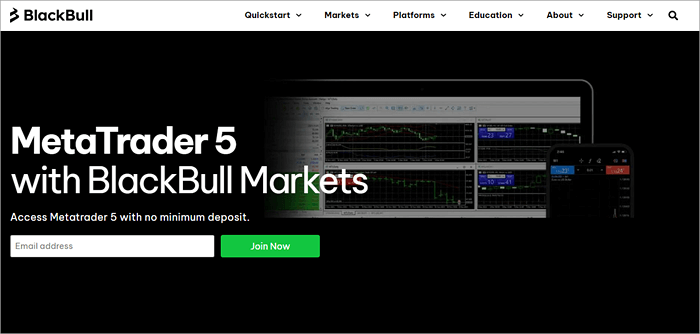 BlackBull Markets supports trading of up to 26,000 assets on the MT5 platform (including forex, commodities, equities, indices, metals, and crypto), at a maximum leverage of 1:500, and no minimum deposit.