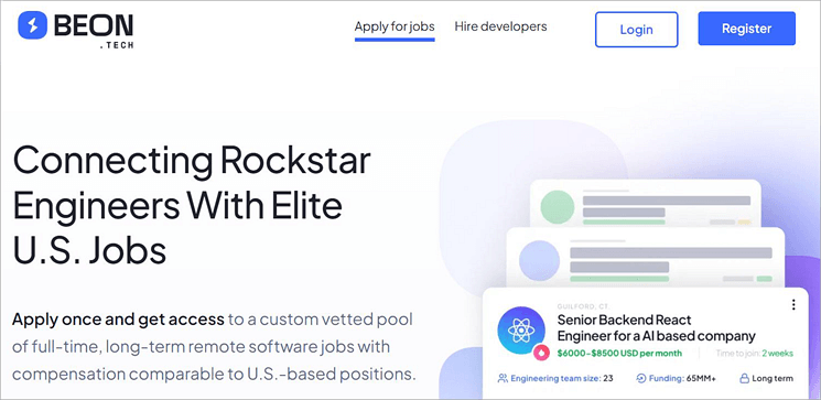 BEON serves as a bridge between developers looking for work and companies seeking talent to handle their software development projects. The company gives you instant access to a pool of pre-vetted Latin American talent. You can find candidates based on your tech stack by simply browsing through BEON’s list.