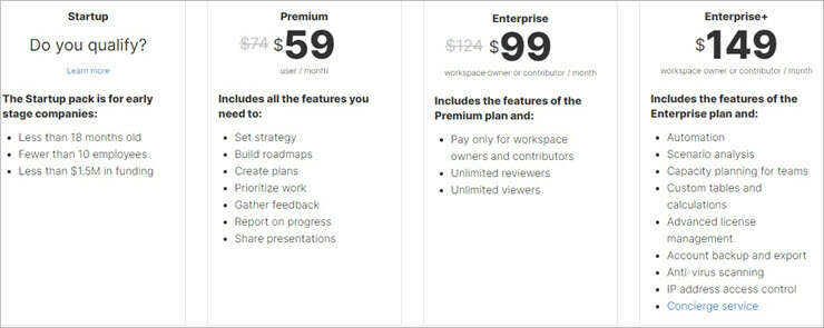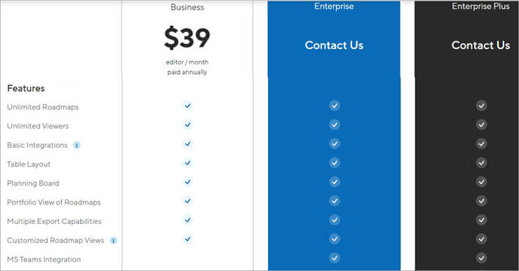 Most product roadmap software offers dedicated plans. You can contact the vendor for specific customized packages that meet your requirements.