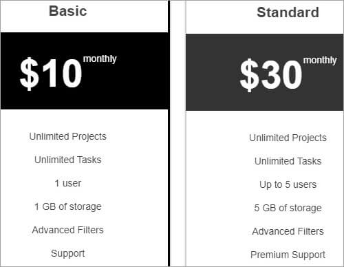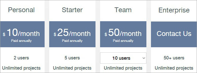 - Free: (supports 5 users, 5 projects, and 500 MB storage)