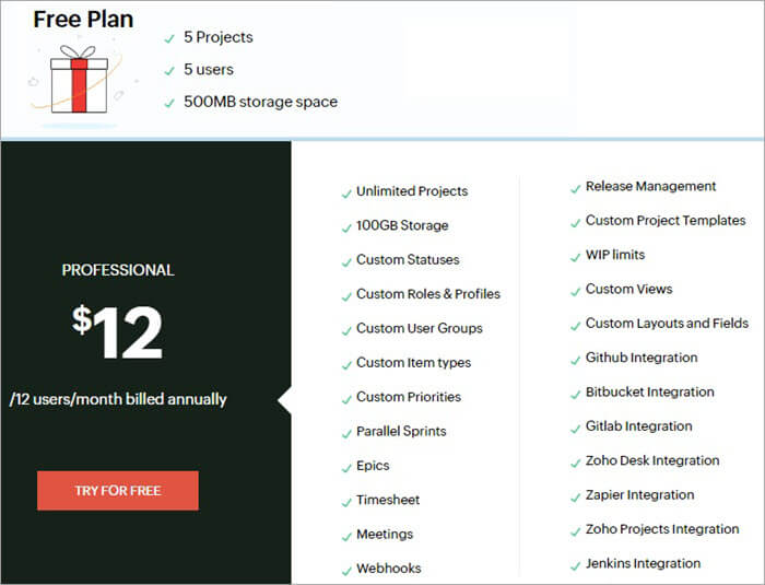 - Integration with Zoho suite and other 3rd party apps-MS Office 360, Microsoft Team, Jenkins, GitHub, GitLab.