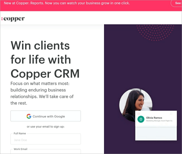 Verdict: Copper is best for its feature of integration, i.e., you can easily manage pipelines and customers right from the inbox. It can integrate with many applications like Gmail, Google Workspace, etc.