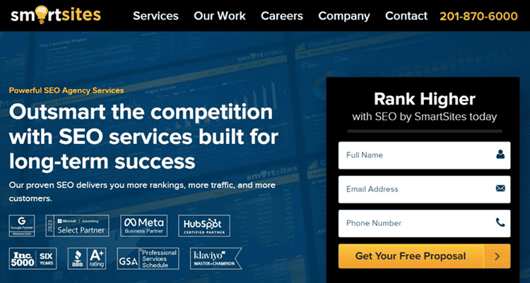 SmartSites offers a suite of digital marketing services to small businesses, and SEO has always been at its core. SmartSites has been widely recognized as the leader in SEO services since its founding. SmartSites is rated as the best small business SEO service by Forbes and has hundreds of 5-star reviews.