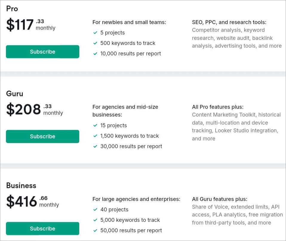 SemrushIts robust SEO and advertising tools.14 daysStarts at $117.33 per month including 5 projects for annual billing.Star_rating_4_of_5
