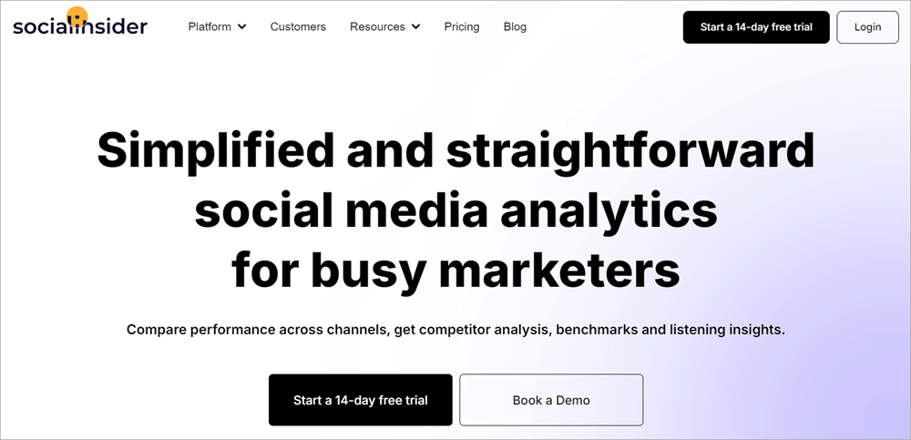 SocialinsiderIts advanced social media comparison.14 daysStarts at $82 per month including 1 team member for annual billing.Star_rating_4.5_of_5