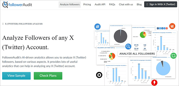 FollowerAudit is yet another tool that I believe does a good job of helping you track your follower count. This tool sets itself apart from other follower checkers on Twitter by leveraging AI-driven analytics. FollowerAudit goes beyond just uncovering who is following you. You can use the tool to identify the quality of people who are following you on Twitter as well.