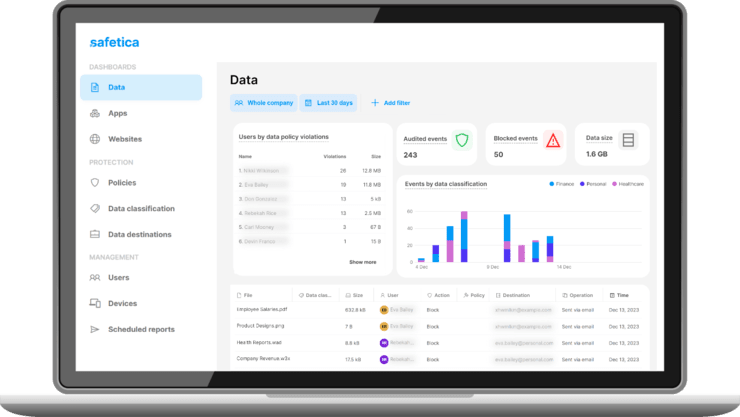 Safetica is an integrated Data Loss Prevention (DLP) and Insider Risk Management (IRM) solution, ?which helps companies to identify, classify, and protect sensitive data as well as detect, analyze, and mitigate risks posed by insider threats within an organization.