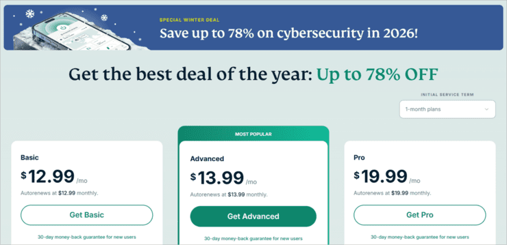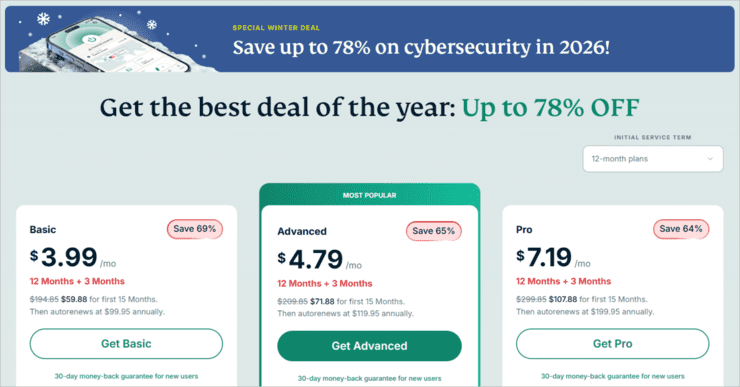 - 12-months: $39.99 for the first year, and $59.76 for each following year