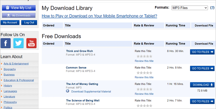 Whether you are interested in personal development, history, science, or literature, there is something for everyone on this website. If you have an Audible account, you can access books for free.