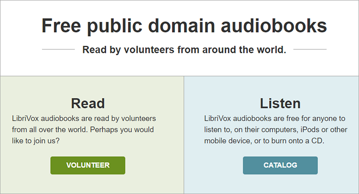 LibriVox has over 50,000 free public domain audiobooks by volunteers who read, record, edit, and distribute these audiobooks.