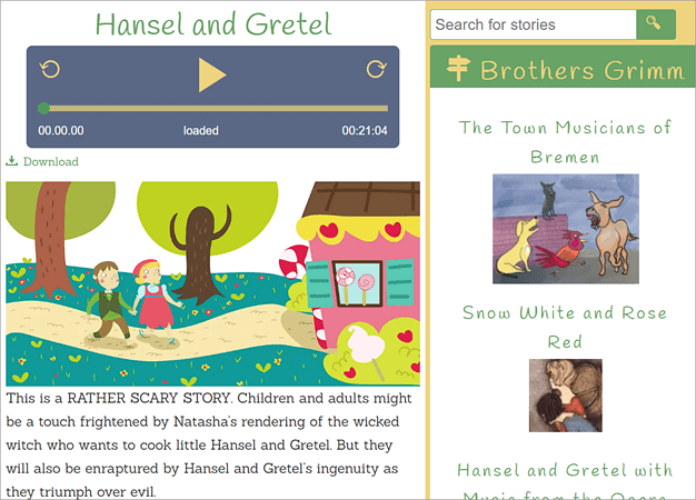 The website is ad-free and does not require registration, making it easy for children to access and use independently. Additionally, some printable activities and worksheets come with the audio content to further engage children with the stories.