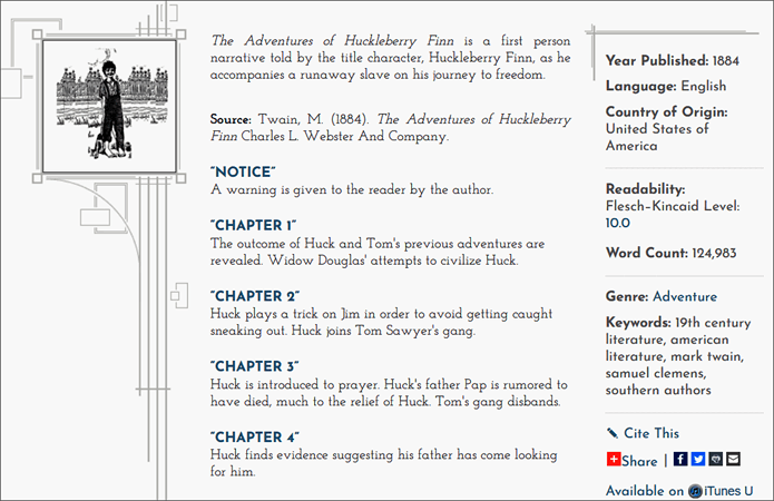 | Lit2Go | Free audio books for children and adults | Transcripts along with audiobooks | Can’t download entire book | Free |
