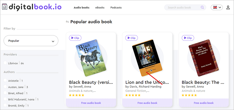 Scribl isn’t entirely free. There are some free audiobooks, but most come at a nominal cost. What I love most about this website are the filters. There are lots and lots of filtering options to find that one book you are looking for without having to scroll endlessly. If you are lucky, you might find some of the rare free audiobooks online here.