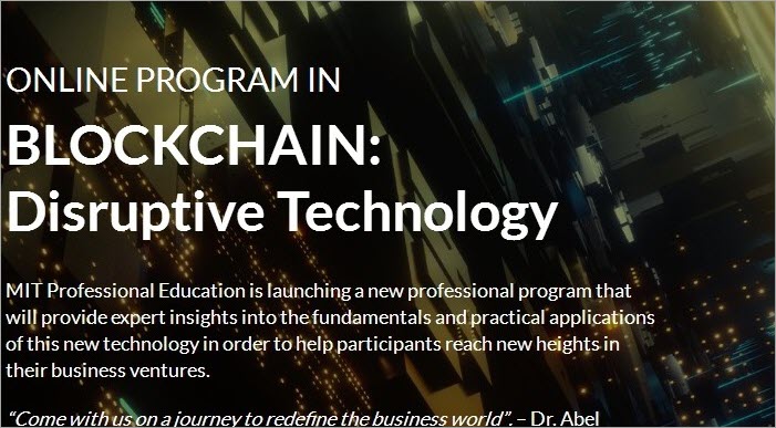 Website: https://professionalprograms.mit.edu/online-program-blockchain-disruptive-technology/