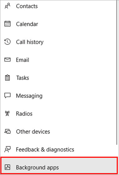 b) Now, click on “Background apps” from the list of options available as shown in the image below.