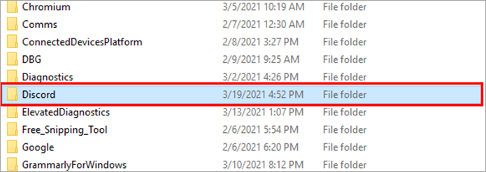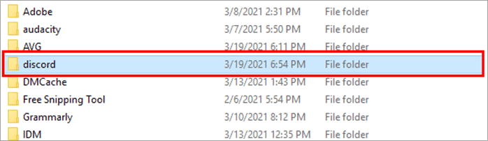 d) A folder will now open, then click on the “Discord” folder and press the delete button to delete all the files.