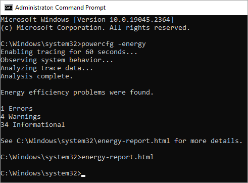 - Type powercfg -energy
