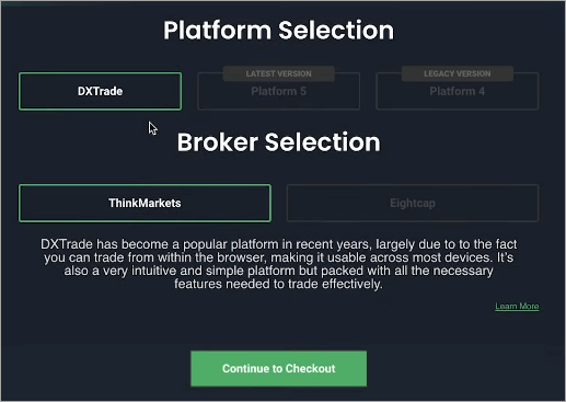 Step #2: Select the trading platform suitable for you. There are three options currently, namely, Match-Trader and DXTrade which do not apply any additional costs on top of pricing and execution, and cTrader which applies $25 on top of pricing and execution.