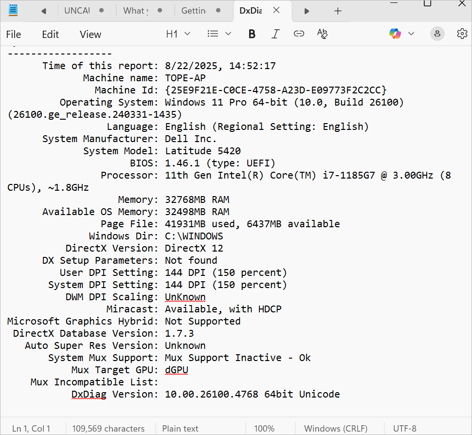 The image below is an example of a DirectX Diagnostic Notepad file.