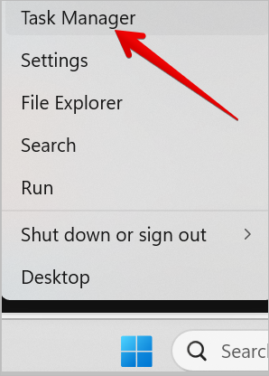 1. Open Task Manager by right-clicking on the Windows icon and selecting Task Manager as shown below. You can also type “Task Manager” in the search box and launch it.