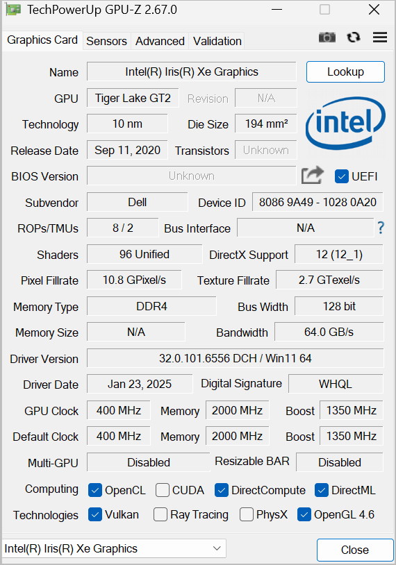 GPU-Z is a free third-party tool that can display information about your PC’s graphics card.