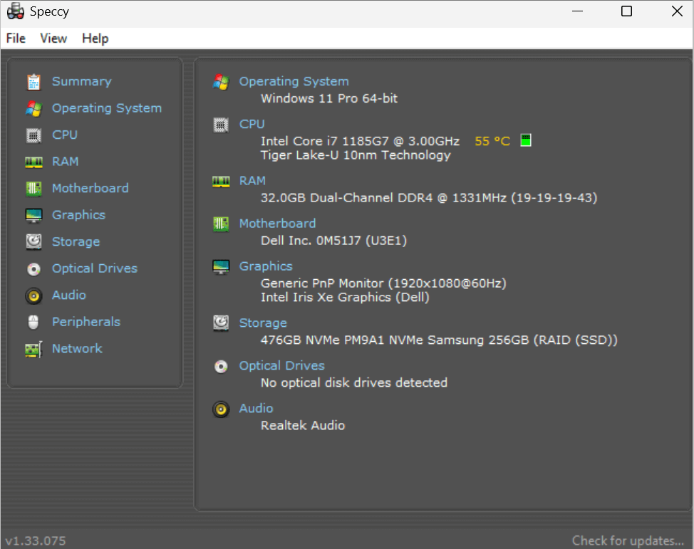 Speccy is a free utility tool that can display comprehensive information about your PC specifications.
