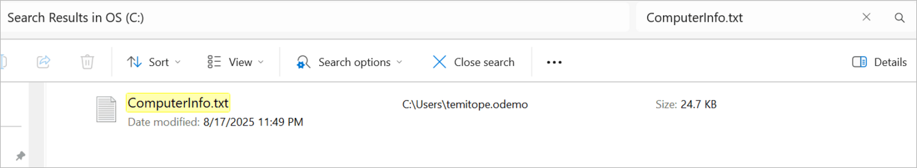 When you check the directory location, you will see the file, and when you open it, you will see the information in the file as shown in the image below.
