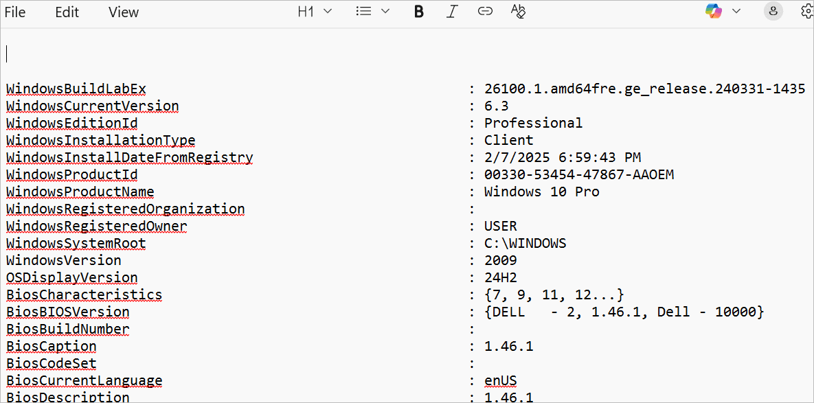 Get-ComputerInfo | Out-File -FilePath “ComputerInfo.txt”