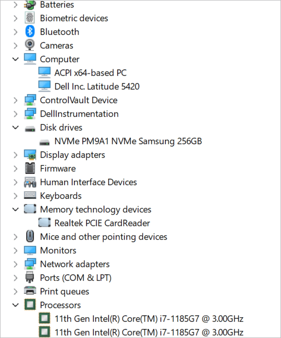 - When you expand each device, you will see the device type as shown below.