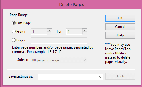 To delete pages from PDF: