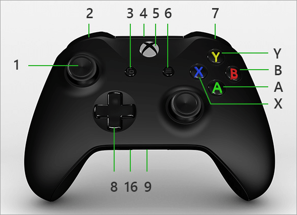 Step #2: Press the Xbox button on the Xbox controller (number 5 on the below image). This opens the guide.